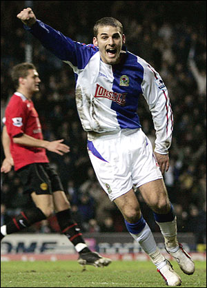 foul on Blackburn's Robbie Savage during their English Premier League