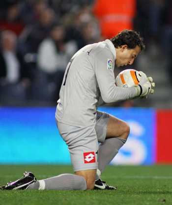 Real Zaragoza goalkeeper Cesar kisses the ball