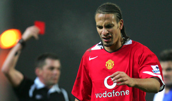 Manchester United's Rio Ferdinand reacts after