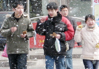 Snowfalls in a sunny day in Lianyungang (newsphoto) Updated: 2006-02-03 16:56