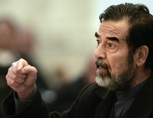 Former Iraqi leader Saddam Hussein gestures