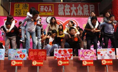 a competition to celebrate the Valentine's Day at a shopping mall in Nanchang, east China's Jiangxi Province February 14,