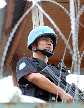 Chinese peacekeepers on guard in Haiti (Newsphoto) Updated: 2006-02-14 16:07
