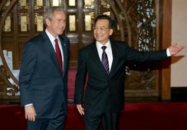 to President Bush at the Diaoyutai State Guest House in Beijing, November