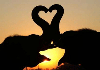and Boonrawd, a 7-year-old cow elephant, form a heart shape with their