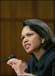 Ms. Rice and other members of the administration have stepped up their criticism of Iran in recent weeks, pressing for United Nations sanctions over its nuclear program and blaming the government of President Mahmoud Ahmadinejad for fomenting violent protests over the publication of satirical cartoons depicting the Prophet Muhammad.