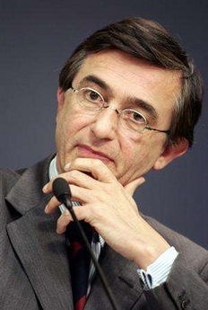 Minister Philippe Douste-Blazy gestures during a news conference in