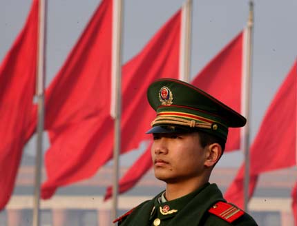 outside the Great Hall of the People in China's capital Beijing March 5,