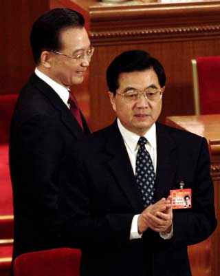 applauds as Premier Wen Jiabao passes during the opening of the National