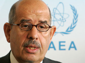 International Atomic Energy Agency (IAEA) Director General Mohammed ElBaradei briefs the media before the beginning of a board of governors meeting at Vienna's U.N. headquarters March 6, 2006. The U.N. atomic watchdog's board of governors meets on Monday to weigh Iran's refusal to curb its nuclear activity, opening the way to possible UN Security Council action over suspicions that it wants to make atom bombs. [Reuters]