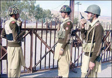 paramilitary soldiers stand alert at a check post in Miranshah. Pakistani
