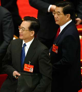 | Jiang Zemin and Hu Jintao join panel discussion of the Army delegation |