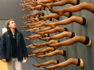 | A man takes a closer look at a display in the Salvador Dali exhibition 'Mass Culture', as part of special events in honor of the Catalan artists' 100th birthday this year, at the CaixaForum in Barcelona, February 4, 2004. The exhibit, consisting of over 400 works by the artist, is to offer an overview of the contact between painting and popular culture that Dali maintained throughout his life. The exhibition runs from February 6 to May 23. [Reuters] |