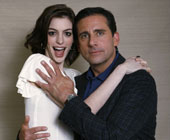 Anne Hathaway and Steve Carell pose at the premiere of "Get Smart" at the Mann Village theatre in Westwood, California June 16, 2008. The movie opens in the U.S. on June 20.