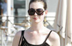 U.S. actress Anne Hathaway walks out of the airport after her arrival in Venice September 2, 2008.