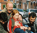 Workers adjust hanging posters of the Mona Lisa inside the Festival Palace ahead of the world premiere of The Da Vinci Code.