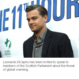 Leonardo DiCaprio has been invited to speak to members of the Scottish Parliament about the threat of global warming.