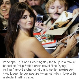 Penelope Cruz and Ben Kingsley team up in a movie based on Philip Roth's short novel "The Dying Animal," about a charismatic and selfish professor who loses his composure when he falls in love with a student half his age.