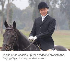 Jackie Chan saddled up for a video to promote the Beijing Olympics' equestrian event.