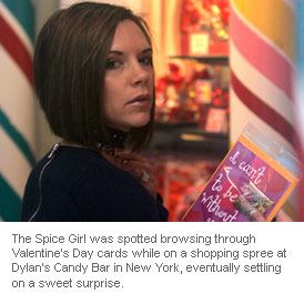 The Spice Girl was spotted browsing through Valentine's Day cards while on a shopping spree at Dylan's Candy Bar in New York, eventually settling on a sweet surprise.