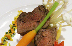 French Chef Eric Castandet displays daily special made with Orgeval yellow courgettes stuffed with meat in the kitchen of 'Terroir Parisien' in Paris.