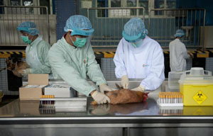 A Korean exhibitor displays a kind of ginseng beer at the 15th HOFEX.