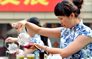 People select tea at the 2013 China Tea Conference in Xinchang county, east China's Zhejiang province, April 9, 2013.