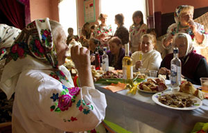 Villagers have lunch after taking part in a ritual celebrating the pagan god Yurya in the village of Pogost, some 250 km (155 miles) south of Minsk May 6, 2013.