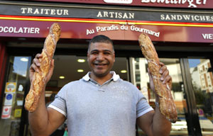 Jury members taste and select baguettes in competition for the 'Grand Prix de la Baguette de la Ville de Paris'.