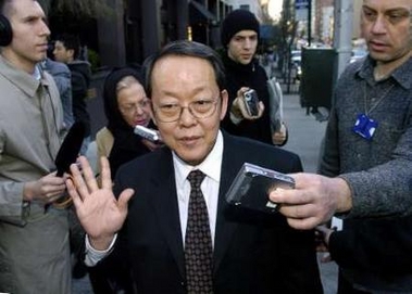 China's UN Ambassador Wang Guangya (C) departs from an informal meeting of the UN Security Council to discuss Iran at the French Mission to the UN near the United Nations headquarters in New York March 14, 2006. Iran came under new pressure to halt its suspected nuclear weapons programs on Tuesday when the United States and its allies took the issue to the full UN Security Council and Russia pursued its own initiative in talks in Moscow. [Reuters]