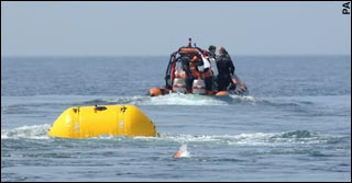 海軍潛水員隨后返回到水下,將浮袋綁在炸彈上,1個半小時后炸彈終于緩慢地浮上了水面。在墨濟(jì)河沿岸警方、海岸警衛(wèi)隊及海軍的共同護(hù)衛(wèi)下,這枚炸彈被安全地拖回了河中央,然后又被沉入了河底。潛水員用塑料爆炸物包裹住它,以便實施安全引爆。