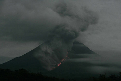 環(huán)球在線消息:5月21日,默拉皮火山在6小時(shí)內(nèi)流出數(shù)十股熔巖,并4次噴發(fā)體積巨大的熱氣團(tuán)。附近居民被籠罩在厚厚的火山灰層下,健康受到了嚴(yán)重影響。
