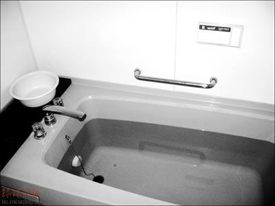 在日本東京一戶人家里,浴缸里的泡澡水要反復用上多次。旁邊的臉盆是用來在泡澡前沖洗干凈的