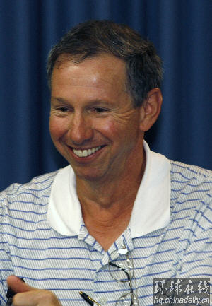 當(dāng)?shù)貢r間2006年6月17日,美國航空航天局局長格里芬在新聞發(fā)布會上微笑!鞍l(fā)現(xiàn)”號航天飛機已經(jīng)定于7月1日發(fā)射升空。(路透社圖片) |