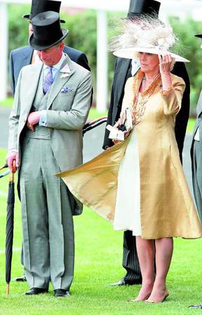 查爾斯王子穿著傳統(tǒng)的禮服,卡米拉戴著一頂很大的用羽毛裝飾的帽子。
