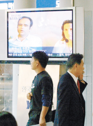 10月13日,首爾火車站的電視屏幕播放著因“冰柜嬰兒案”被捕的法國夫婦的新聞