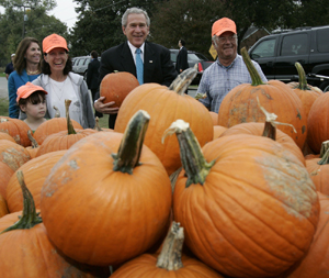 綜合英國(guó)和美國(guó)媒體報(bào)道,當(dāng)?shù)貢r(shí)間10月19日,美國(guó)總統(tǒng)布什飛到弗吉尼亞州,參加為參議員喬治?艾倫舉行的共和黨資金籌集活動(dòng);顒(dòng)結(jié)束后,布什在一個(gè)路邊的商攤上挑選了萬(wàn)圣節(jié)南瓜。