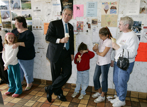 當(dāng)天,布什還在賓夕法尼亞州參加了國(guó)會(huì)議員唐?舍伍德的地方競(jìng)選活動(dòng)。此后,他出人意料地走進(jìn)當(dāng)?shù)匾患冶ち璧,興致勃勃地和店里的小朋友一起吃起了美味的冰激凌。有意思的是,布什一邊吃還一邊擺出各種造型,給攝影師們提供了不錯(cuò)的素材。