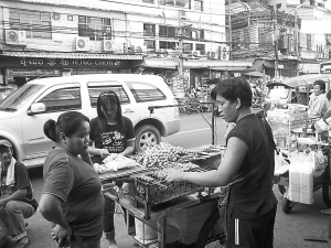 泰國(guó)首都曼谷街頭的小攤販隨處可見(jiàn)(任建民)