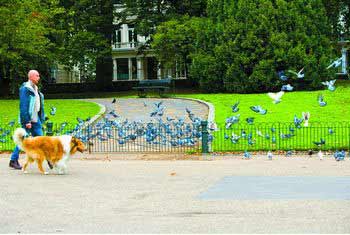 辦證以后,狗就算是擁有了合法戶口,但是還需要買一個結(jié)實(shí)的狗鏈。美國的法律規(guī)定,不管你養(yǎng)的什么狗,只要長著嘴巴還有四條腿,就必須脖子上面套一個鏈子,并且遛狗的時候要盡量讓你的狗遠(yuǎn)離其他的行人。當(dāng)然這不是說小狗狗們不能隨意奔跑玩耍,這是要分場合的,在大面積的草坪上面,人很少的時候,經(jīng)?梢钥吹饺藗冊诟麄兊膶櫸锕繁寂芡嫠。但是在大街上,任何人遛狗都是牽著狗的。如果沒有狗鏈,寵物狗對別人的安全或者家畜造成了威脅,他們就會被人射殺;如果他們隨處便溺,就會被捉住收容或者實(shí)施安樂死。