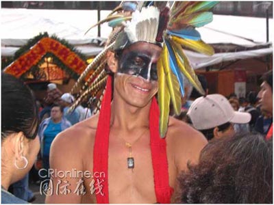 這么旺的人氣自然吸引了眾多小販把攤位擺到廣場(chǎng)上來,有賣骷髏頭糖、骷髏玩具的,有拿著調(diào)色板張羅著要把你化裝成鬼的,有賣印第安土著小吃的,甚至還有一個(gè)在香港中文大學(xué)念過兩年中文的墨西哥老兄在幫人寫中國名字,場(chǎng)面別提多熱鬧了。