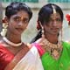兩個孩子在體驗(yàn)中世紀(jì)刑具。