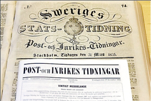 瑞典《國(guó)內(nèi)郵報(bào)》在1645年由瑞典女王克里斯蒂娜一手創(chuàng)辦,并通過法律規(guī)定《國(guó)內(nèi)郵報(bào)》作為瑞典政府新聞“喉舌”的職責(zé)。在十七世紀(jì)末期和整個(gè)十八世紀(jì),《國(guó)內(nèi)郵報(bào)》一直是瑞典讀者獲取新聞信息的主要途徑。但是到了十九世紀(jì),面臨其他報(bào)紙的挑戰(zhàn)和競(jìng)爭(zhēng),《國(guó)內(nèi)郵報(bào)》的發(fā)行量和影響力每況愈下。最后,《國(guó)內(nèi)郵報(bào)》從新聞報(bào)紙變成以刊登政府、上市公司、金融和法律機(jī)構(gòu)的通告為主的報(bào)紙。