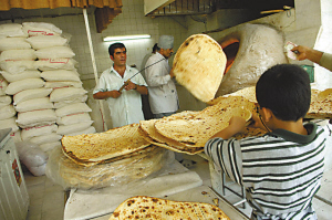在德黑蘭,大餅作為老百姓最基本的生活必需品,一直保持低廉的價(jià)格。德黑蘭政府給大多數(shù)手工制餅作坊發(fā)放面粉配額,花費(fèi)巨資來(lái)維持大餅的低價(jià)。伊朗經(jīng)貿(mào)部長(zhǎng)曾公開(kāi)表示,大餅漲價(jià)是違犯憲法的,任何時(shí)候都不能允許這樣的情況發(fā)生。