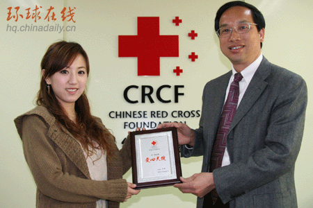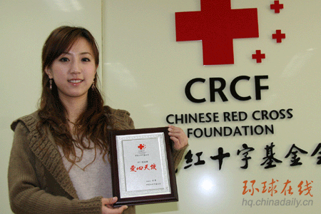中國日報(bào)網(wǎng)環(huán)球在線消息:2007年2月5日下午,在中國互聯(lián)網(wǎng)上因“愛心”走紅的南京“幼教美眉”陳麗琳正式接受中國紅十字基金會的邀請,擔(dān)任中國重癥兒童愛心大使,開始在網(wǎng)上為因貧窮無法醫(yī)治重病的兒童募捐。