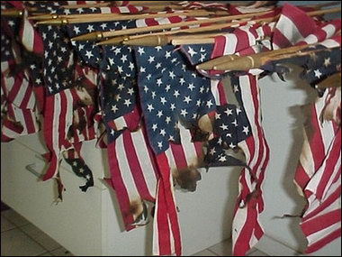 在華盛頓州奧卡斯島陣亡軍人墓地,用于裝飾的46枚美國(guó)小國(guó)旗不翼而飛,33枚小國(guó)旗27日被焚燒。在其中14枚美國(guó)國(guó)旗所在的位置上,出現(xiàn)了手繪的納粹十字旗。當(dāng)天下午有關(guān)部門(mén)把遭焚毀的美國(guó)國(guó)旗全部更換一新。然而,陣亡軍人墓地再次被破壞者光顧。在28日的“陣亡戰(zhàn)士紀(jì)念日”,墓地出現(xiàn)了33面納粹十字旗。