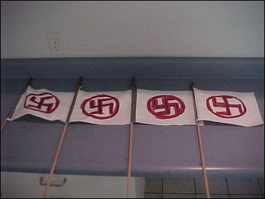 在美國(guó)國(guó)旗所在的位置上,出現(xiàn)了手繪的納粹十字旗。