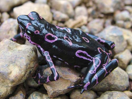 在此次的新發(fā)現(xiàn)中,一種罕見、奇特的紫色蛙尤其引人注目。它的背部皮膚呈深紫色,同時(shí)上面還不規(guī)則地分布著淡紫色的熒光圈。