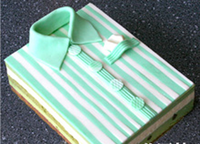 “襯衣蛋糕”表面色彩為綠色和乳白色的條紋,還配有綠色的領(lǐng)子和4個(gè)巧妙的襯衣紐扣,遠(yuǎn)遠(yuǎn)看起來就像一件折疊整齊的襯衣。