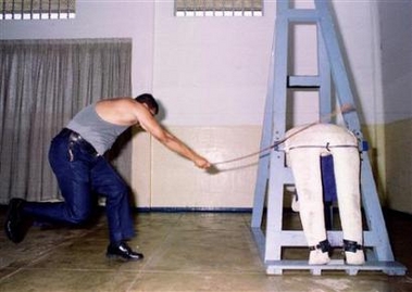新加坡的鞭刑現(xiàn)場。鞭刑是比較殘酷的,一般一次處刑是一鞭,打的皮開肉綻的,然后回去養(yǎng)傷,等傷好以后再受第二鞭,可見對于罪犯的身體懲罰和心理震懾是非常嚴重的。